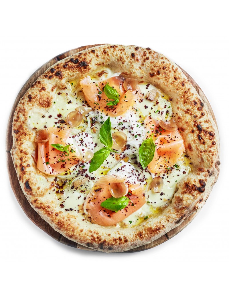 Crème fraîche, mozza, saumon fumé, tomates cerises et citron