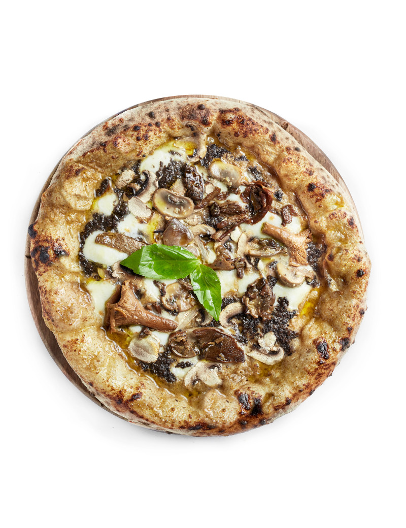 Base créme de truffe noir, mozza, champignons et parmesan.